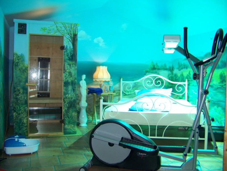mit modrenem Solarfluter, einer Infrarot-Wärmekabine, Lauftrainer, Fußsprudelbecken sowie Moorwärmepackungen zur Selbstanwendung und zusätzlichem Doppelbett für die Ruhe zwischendurch